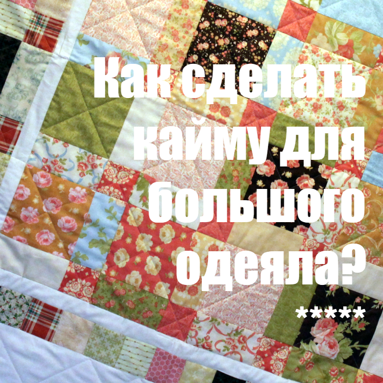 В одном из своих видео я показывала как изготовить кайму для лоскутного одеяла. Шила я тогда детское одеяло и отрезала ткань на кайму сначала на всю ширину ткани, а затем — обрезала до нужного размера. И у многих моих зрителей возник вопрос, как кроить кайму, если одеяло крупного размера, то есть больше по ширине и длине, чем ширина ткани, из которой мы шьем?