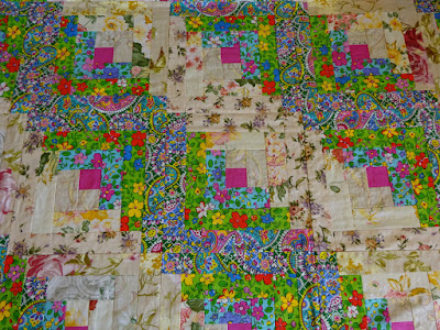 Потом из трикотажных вещей, принадлежащих моим близким родственникам сделала красивое покрывало на тему: разноцветная галька на песке. Можно сказать, что это покрывало — оберег. Оно живет у моей сестры.