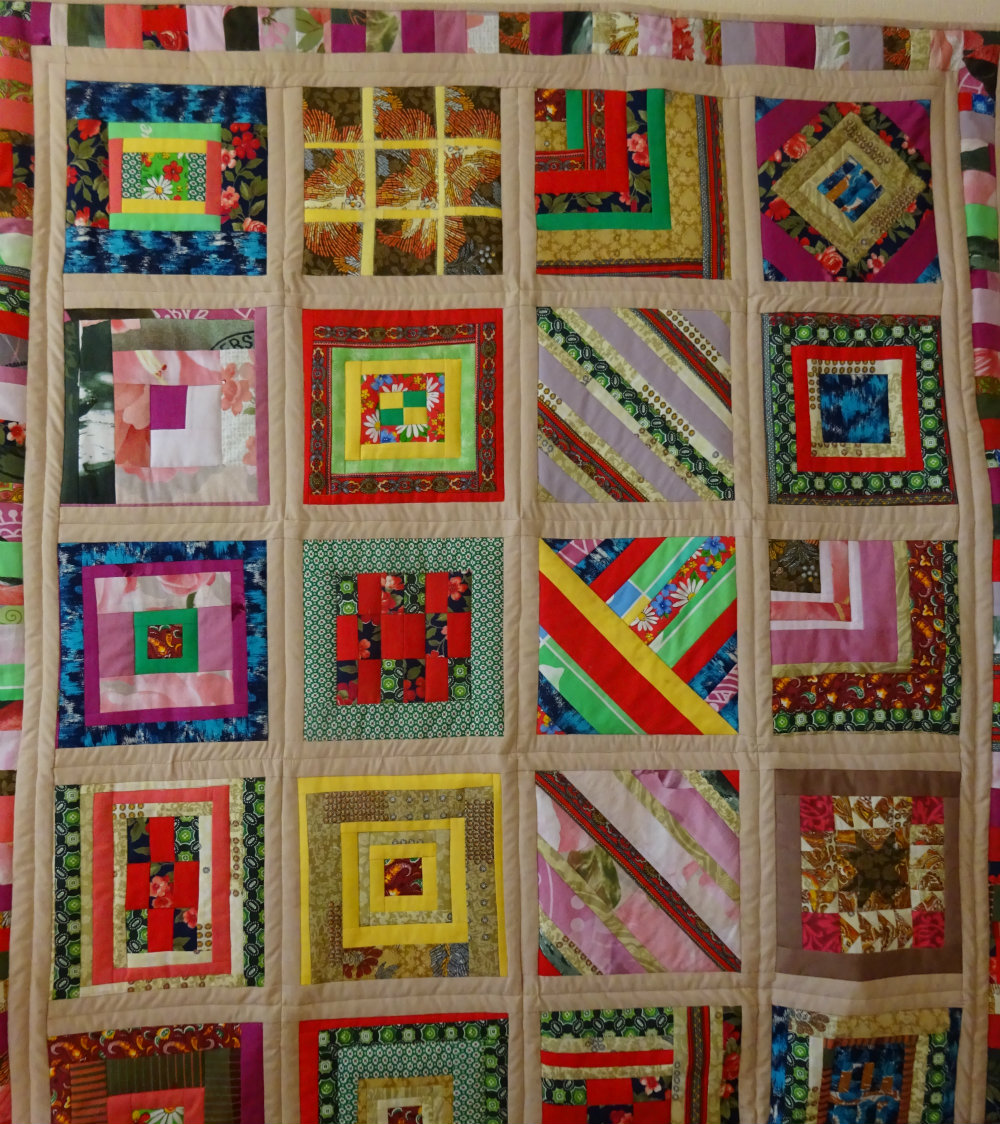Любовь Николаевна: Я люблю в лоскутном шитье не повторяться, осваивать разные по качеству ткани. Часто, особенно в период нехватки материалов, исходила из того, что было, и от этого рождалось одеяло, а не по схемам. Увидела как-то ткань по египетским мотивам, сделала произвольные простеганные блоки и собирала верх, исходя из тематики рисунка.
